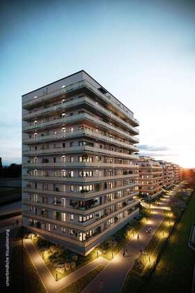 Vier siebengeschossige Gebäude und als markanten Akzent ein elfgeschossiges Hochhaus, welches den urbanen Charakter des Standorts widerspiegelt.